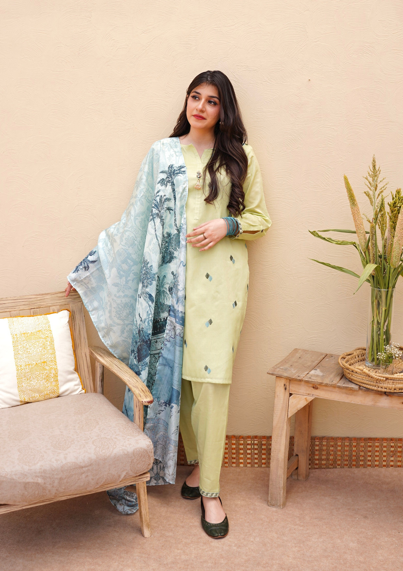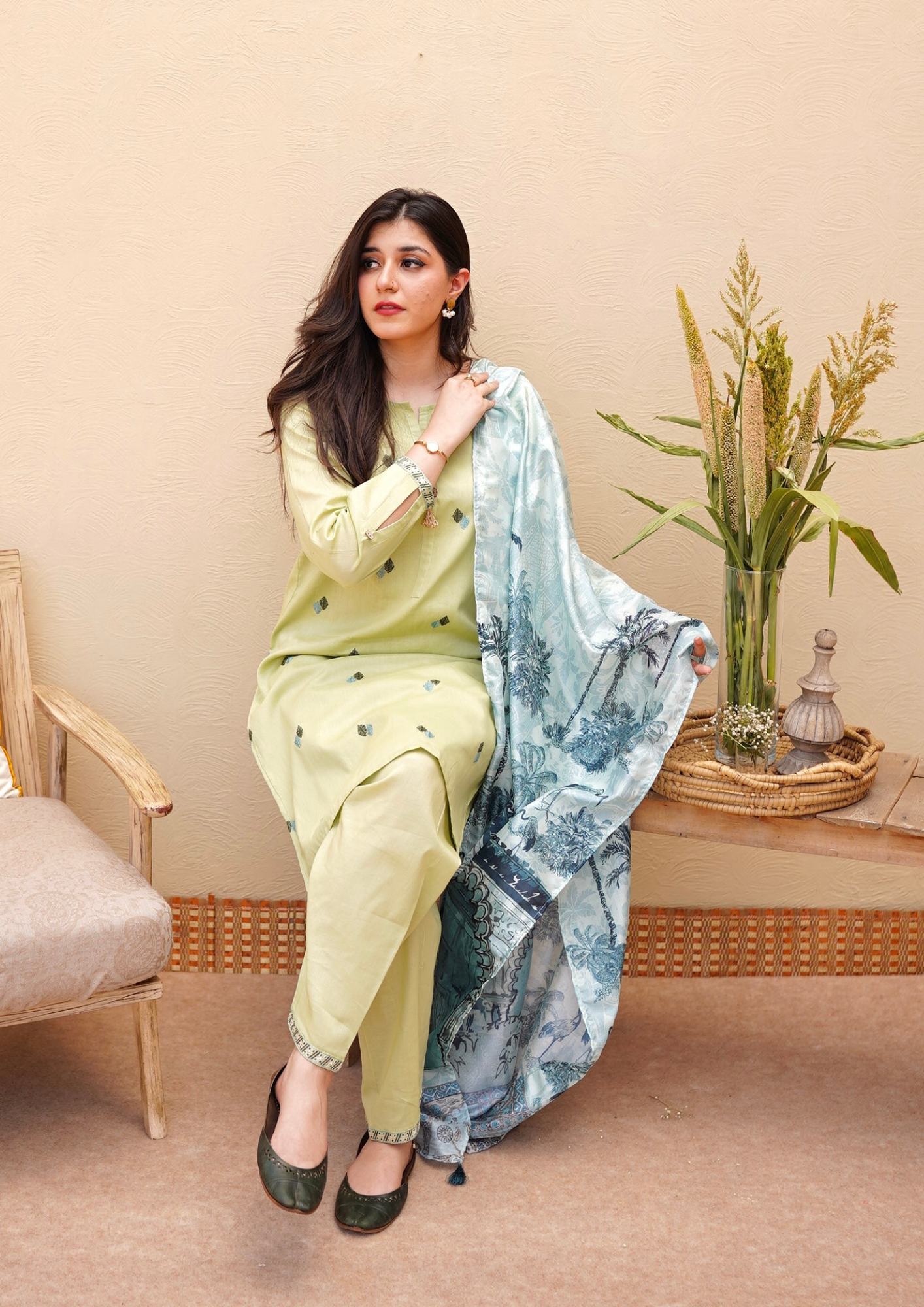 Mint Green Kurta and Shalwar, where minimal embroidery meets maximum style.The delicate neckline and sleeves adorned with buttons, tassels and embroidery.