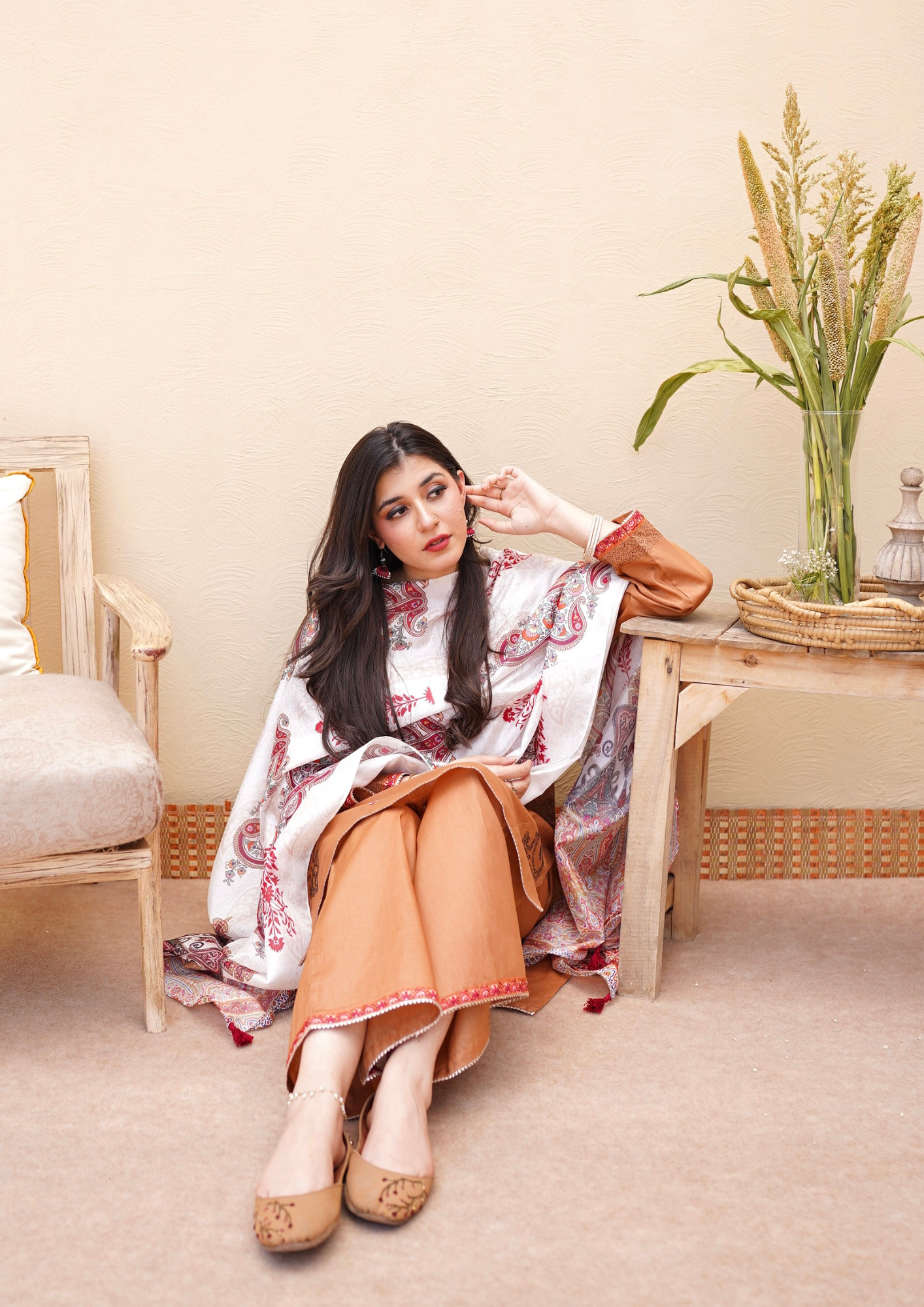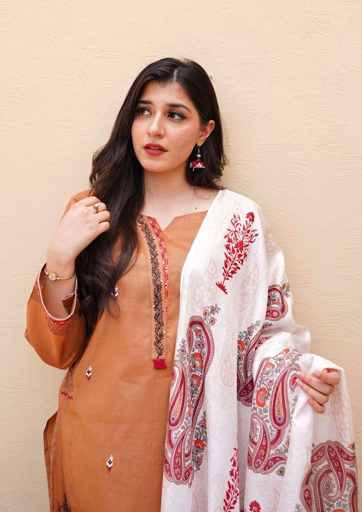 This stunning ensemble features intricate embroidery in black, white, and maroon combo. Complete the look with our beautiful printed dupatta.